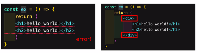 - 여러가지 요소가 있다면 반드시 부모 요소로 감싸야한다.