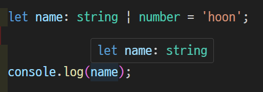 let name: any = 'hoon'; name = 123; name = undefined; name = [];2. 쓰는 순간 타입스크립트 쓰는 이유가 없어진다. (변수 타입 체크 해제 기능)